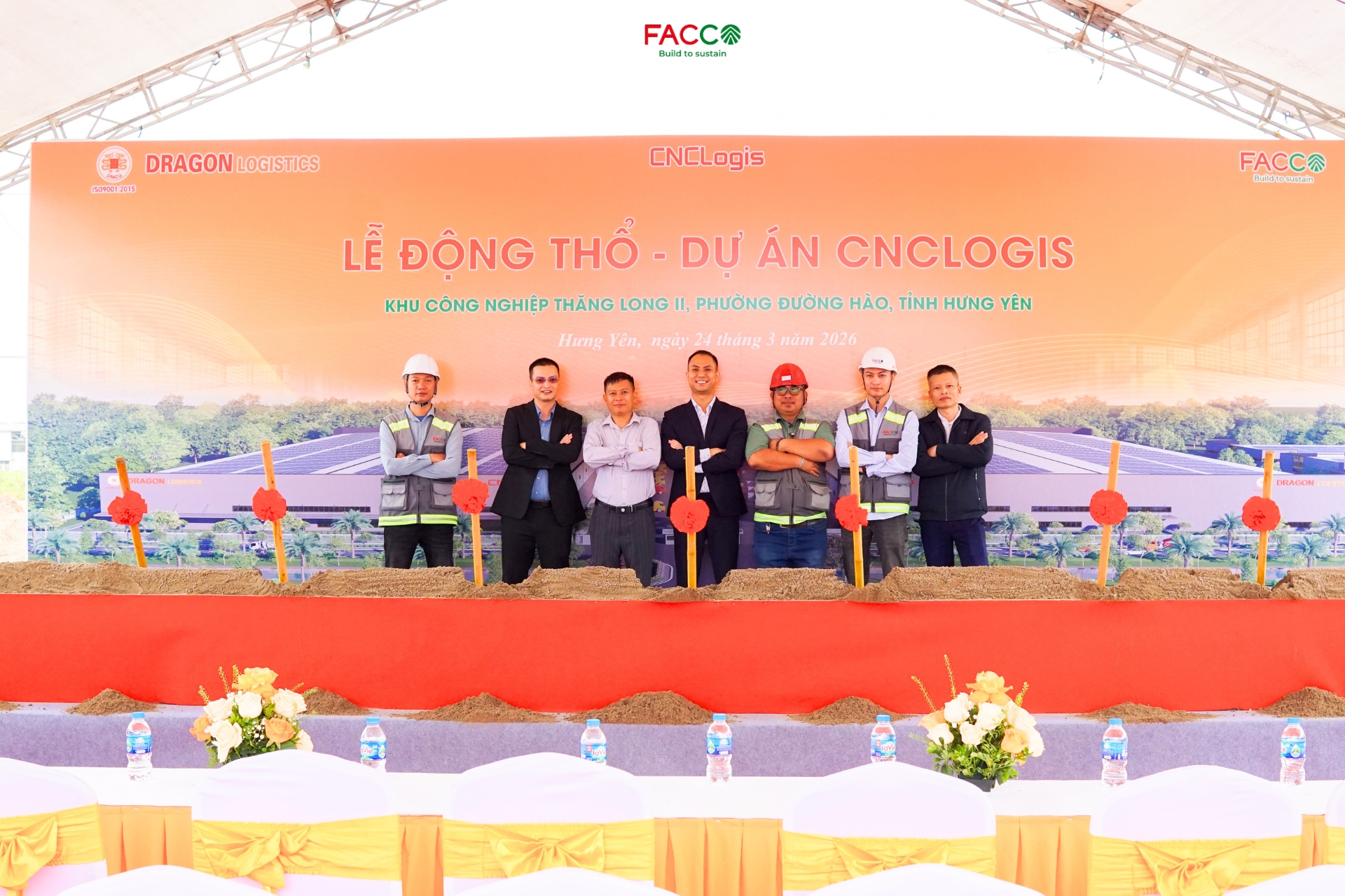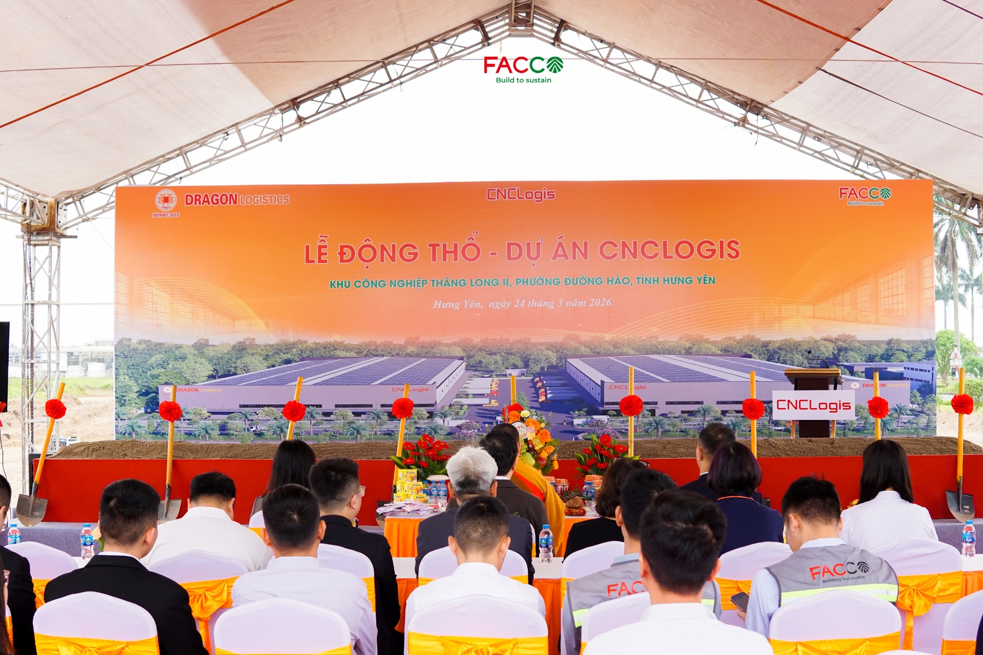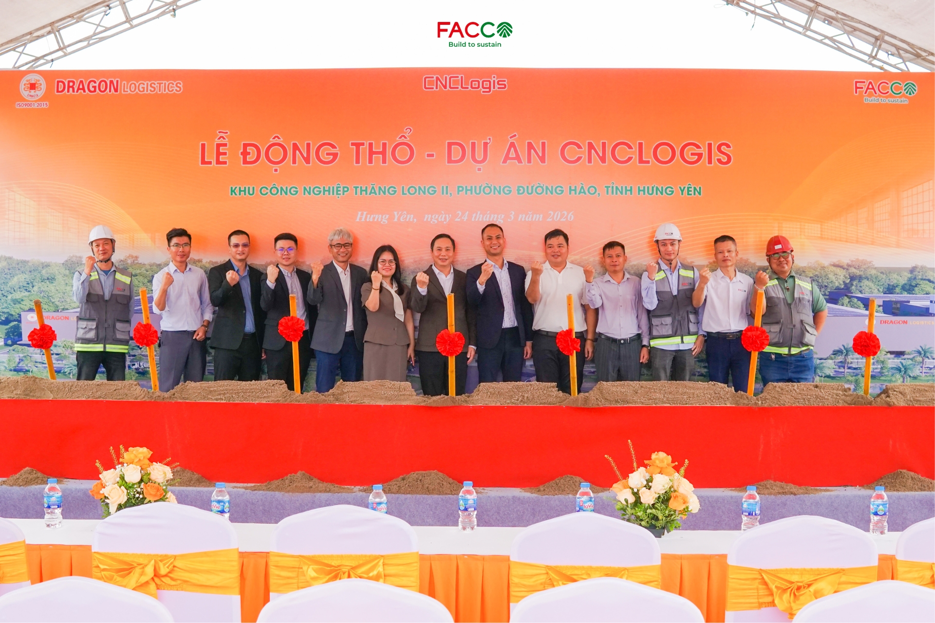 Hôm nay, ngày 24/03/2026, Công ty Cổ phần Đầu tư Xây dựng Facco phối hợp cùng Chủ đầu tư – Công ty Cổ phần CNCLOGIS Hưng Yên  đã tổ chức Lễ động thổ khởi công dự án CNCLOGIS tại Khu công nghiệp Thăng Long II, phường Đường Hào, tỉnh Hưng Yên.