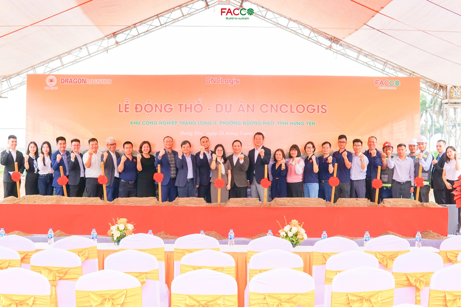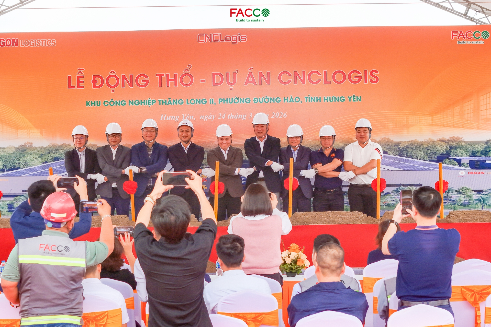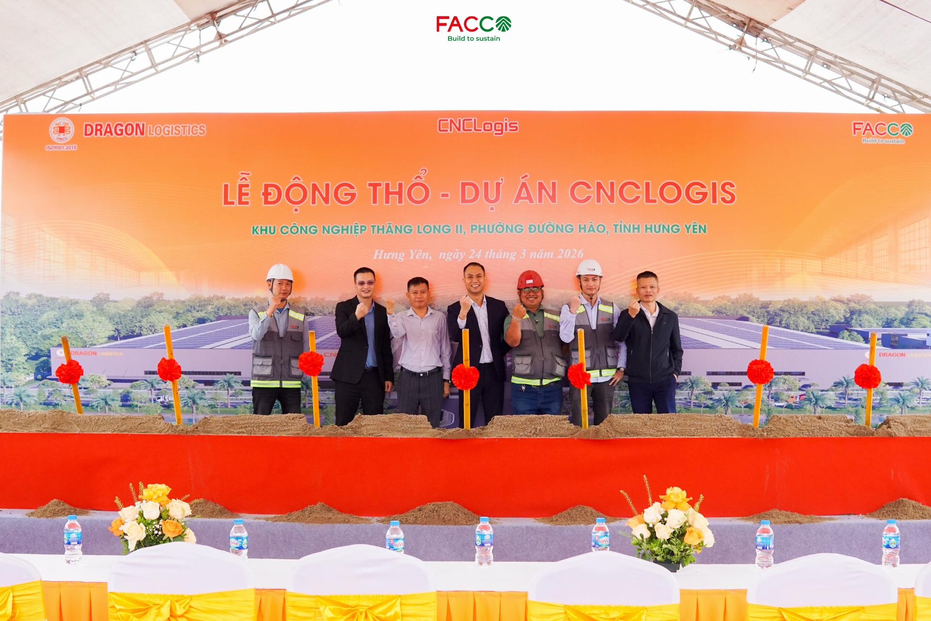 Hôm nay, ngày 24/03/2026, Công ty Cổ phần Đầu tư Xây dựng Facco phối hợp cùng Chủ đầu tư – Công ty Cổ phần CNCLOGIS Hưng Yên  đã tổ chức Lễ động thổ khởi công dự án CNCLOGIS tại Khu công nghiệp Thăng Long II, phường Đường Hào, tỉnh Hưng Yên.