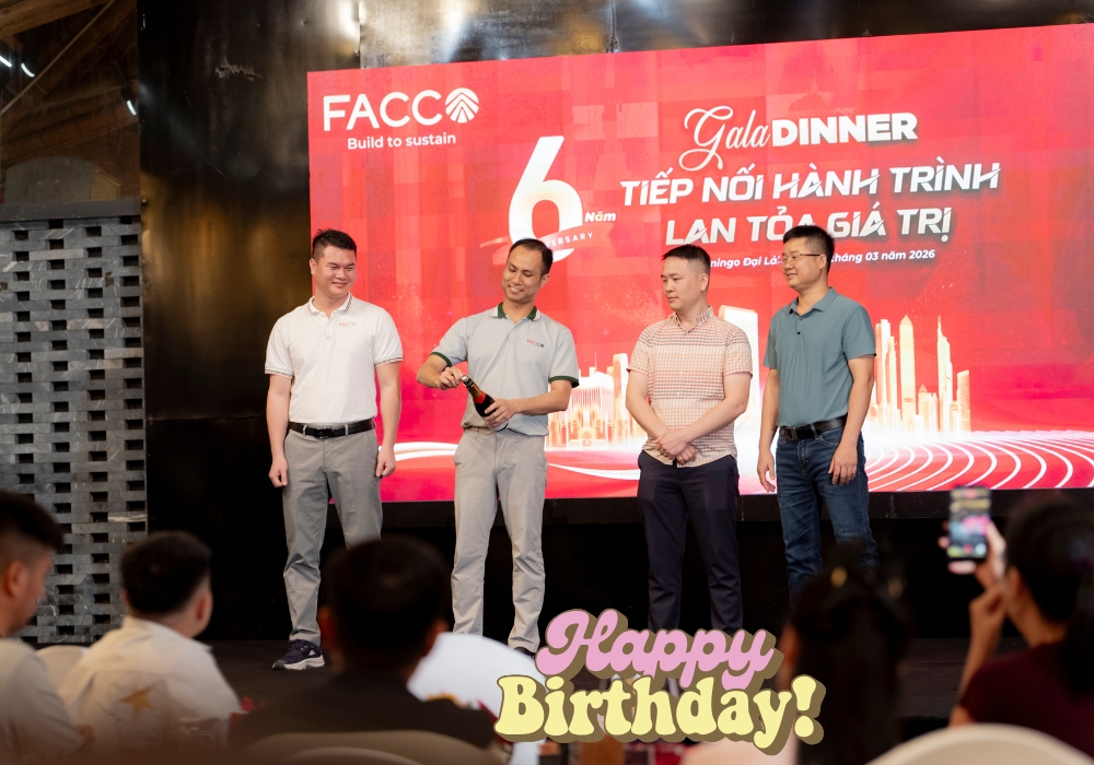 Ngày 03/03/2026, tại không gian xanh mát và sang trọng của Flamingo Đại Lải, Công ty Cổ phần Đầu Tư Xây Dựng Facco đã tổ chức Lễ kỷ niệm 6 năm thành lập (03/03/2020 – 03/03/2026) với sự tham gia của toàn thể cán bộ công nhân viên.