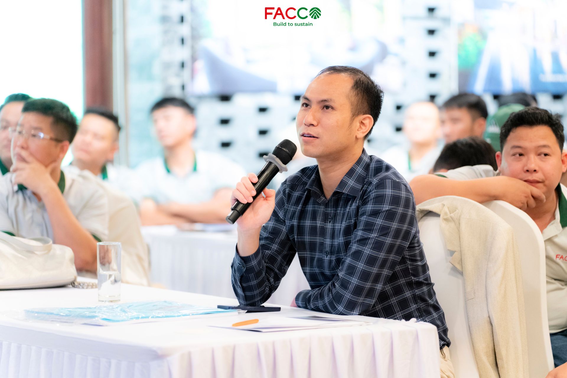 Các nội dung được chia sẻ bởi Tổng Giám đốc Lê Viết Quỳnh, Giám đốc Kế hoạch Lê Thị Hiền và Giám đốc Thiết kế Trần Minh Tiến – những người đã có nhiều năm gắn bó với Facco. Với kinh nghiệm thực tiễn và sự thấu hiểu sâu sắc về văn hóa doanh nghiệp, các diễn giả đã mang đến nhiều góc nhìn ý nghĩa, góp phần giúp các thành viên hình dung rõ hơn về “tâm thế đúng” trong công việc và vai trò của mỗi cá nhân trong hành trình phát triển chung của Facco.